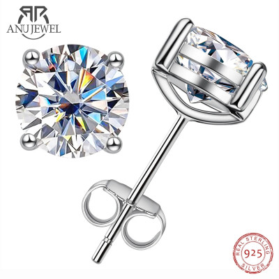 أقراط من الفضة الإسترليني 925 ماركة anugem 2ct D Color Moissanite للسيدات مع أقراط مجوهرات مخصصة بشهادة GRA