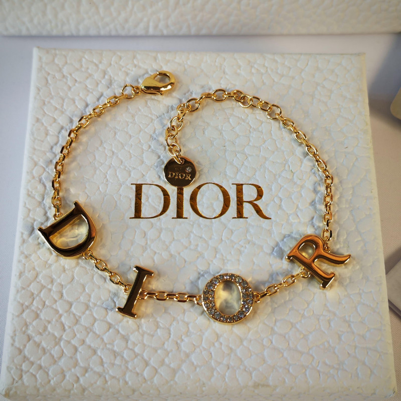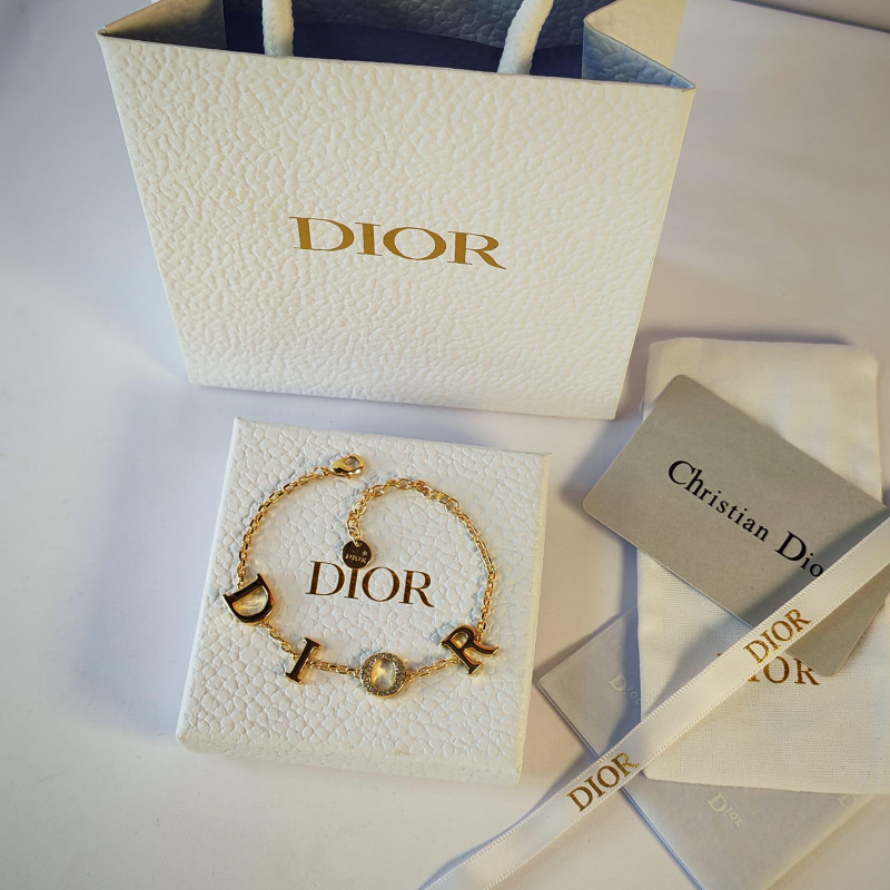 اسوارة أنيقة مطلية باللون الذهبي مع حروف DIOR الفاخرة، يزين حرف O بفصوص كريستال لامعة تضيف لمسة فخامة مميزة.
