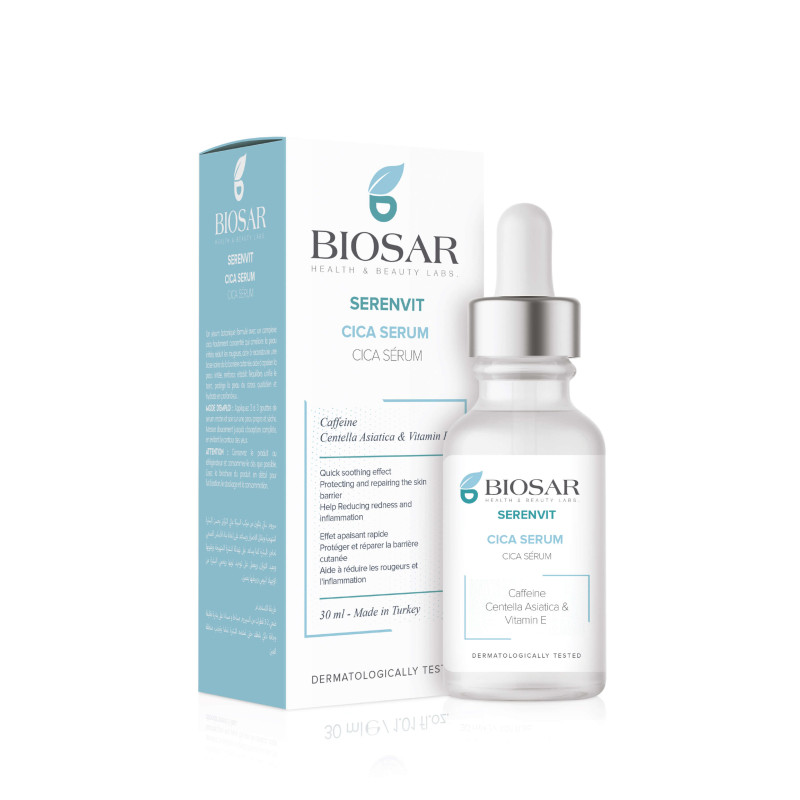 سيروم سيكا من بيوسار سيرينفيت هو الحل المثالي لمن يعانون من احمرار، تهيج، أو بشرة متضررة. يحتوي على سنتيلا أسياتيكا (سيكا)، سكوالين، والألوفيرا، التي تعمل معًا على تهدئة البشرة، ترميمها، وتعزيز حاجزها الطبيعي. مع الاستخدام المنتظم، يساعد هذا السيروم في تقليل الاحمرار والالتهابات، مما يمنح البشرة مظهرًا أكثر صحة ونضارة.