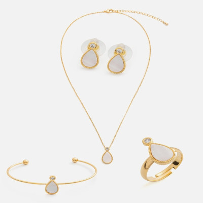 - بتصميم حلية بشكل مميز مرصعة بحجر زركون بلون أبيض صدفي تضفي لمسة من الأناقة